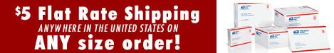 Exceptions: Flat rate $5 Priority mail service does not apply to custom orders. Always working to keep costs as low as possible small light orders may ship first class USPS. If required, we will occasionally ship by way of additional carriers.